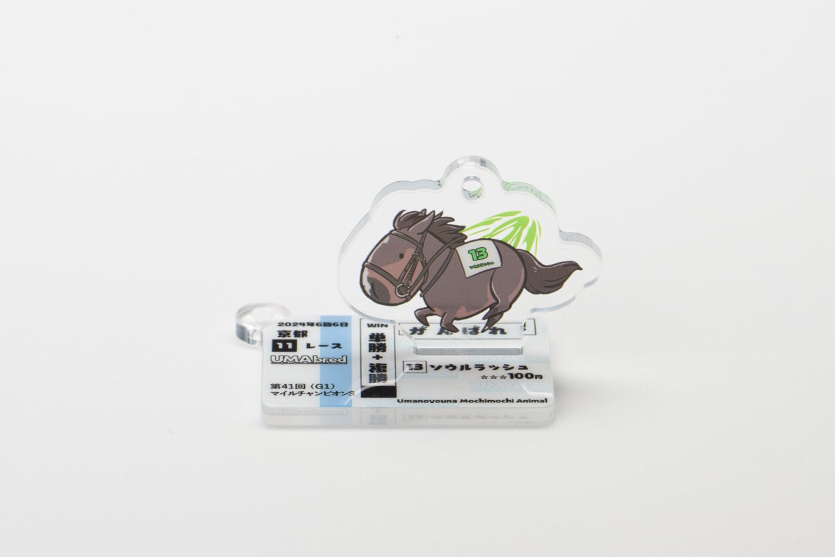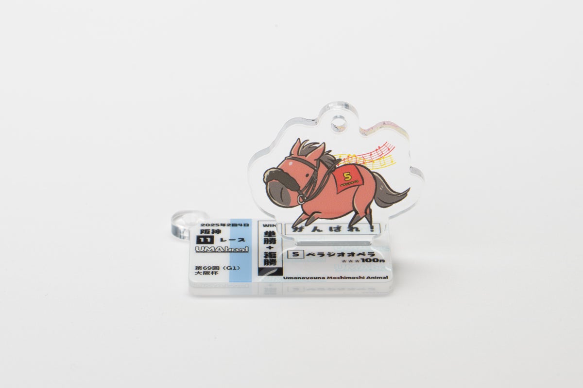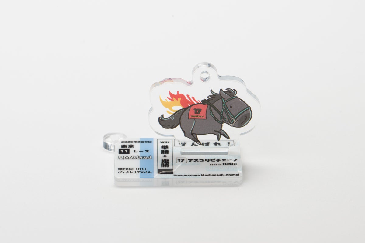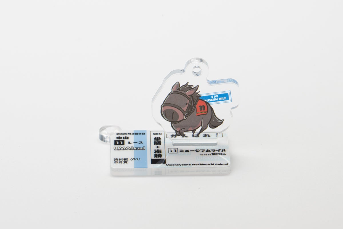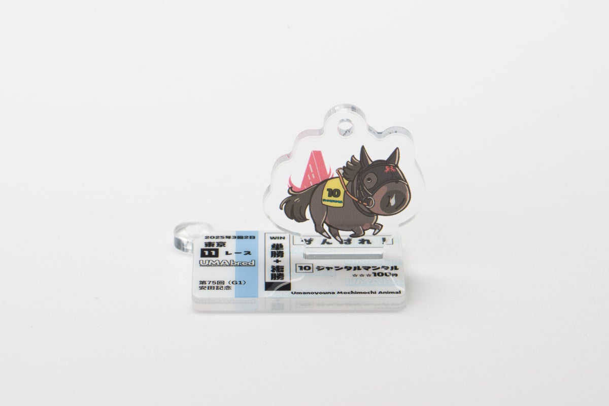 UMA本体のイラストと別に「馬券風デザイン」のアクリルも付属。