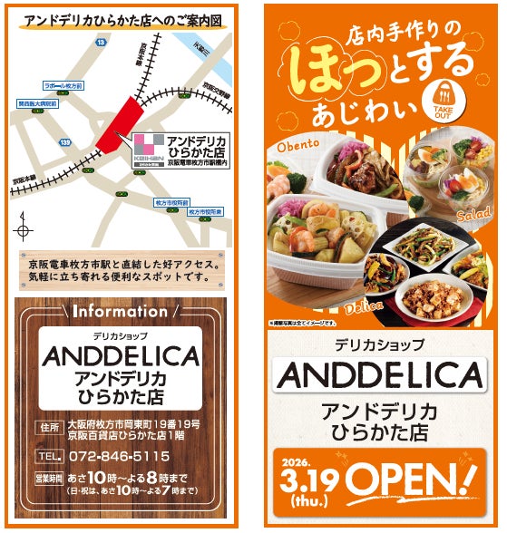 株式会社オークワは、3月19日(木)大阪府枚方市に惣菜専門店である「ANDDELICAひらかた店」(以下、当店)をオープンいたします。