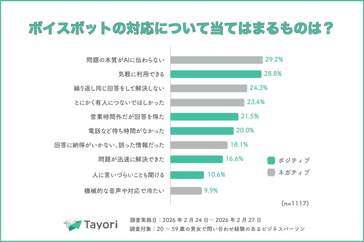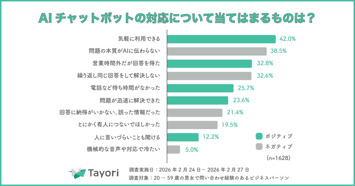 プレスリリース配信サービス「PR TIMES」を運営する株式会社PR TIMES(東京都港区、代表取締役:山口拓己、東証プライム・名証プレミア:3922)が提供するカスタマーサポートツール「Tayori」(読み:タヨリ)は、2026年2月24日~3月2日にカスタマーサポート調査を実施しました。「Tayori」はカスタマーサポート調査を2023年より実施しており、問い合わせ対応業務に関する企業の意識や問い合わせ時の顧客の傾向を分析し、公開しています。