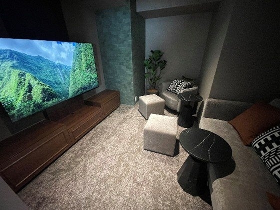 共用部にはラウンジ、ワーキングルーム、シアタールームを完備し、ワーキングルームとシアタールームには、DXYZが提供する施設予約サービス「FreeiD Reserve」を導入しました。スマートフォンなどを経由し、予約から利用時の入室管理までを顔認証IDひとつで完結でき、顔をかざすだけでスムーズに入室できる直感的でストレスフリーな施設利用方法を提供します。