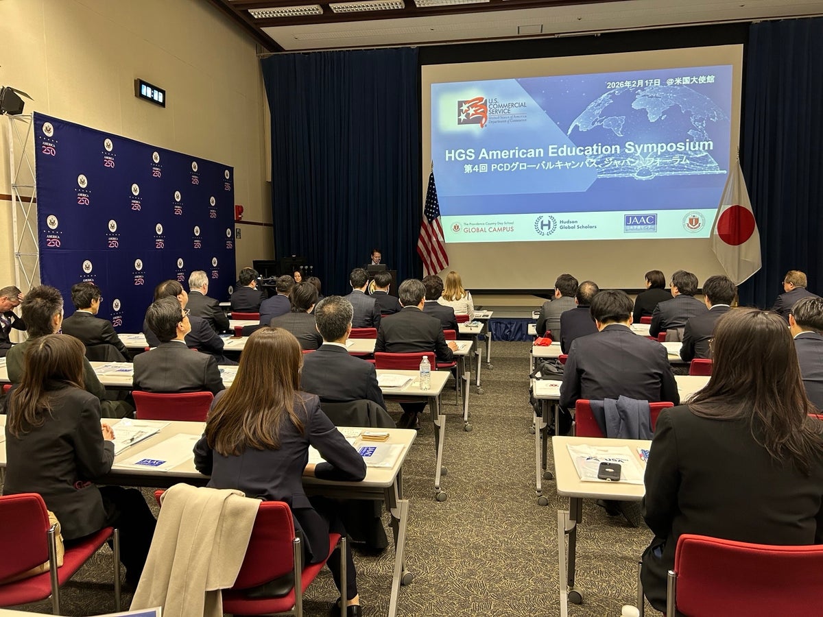 日米両国の高校卒業資格を同時に取得できるオンラインプログラム「USデュアルディプロマプログラム」(以下、DDP)の最新情報を提供することを目的として、「第4回 PCDグローバルキャンパス・ジャパン フォーラム」が、去る2月17日(火)、在日米国大使館において開催された。本フォーラムは、米国大使館商務部が、DDP加盟校(DDPを在校生に積極的に推奨する全国の中高一貫校)など約50校を招待して実施されたもので、当日は学校長や国際教育担当教員など約80名が参加した。開催にあたり、元駐アメリカ合衆国特命全権大使・藤崎一郎氏から祝辞も寄せられた。