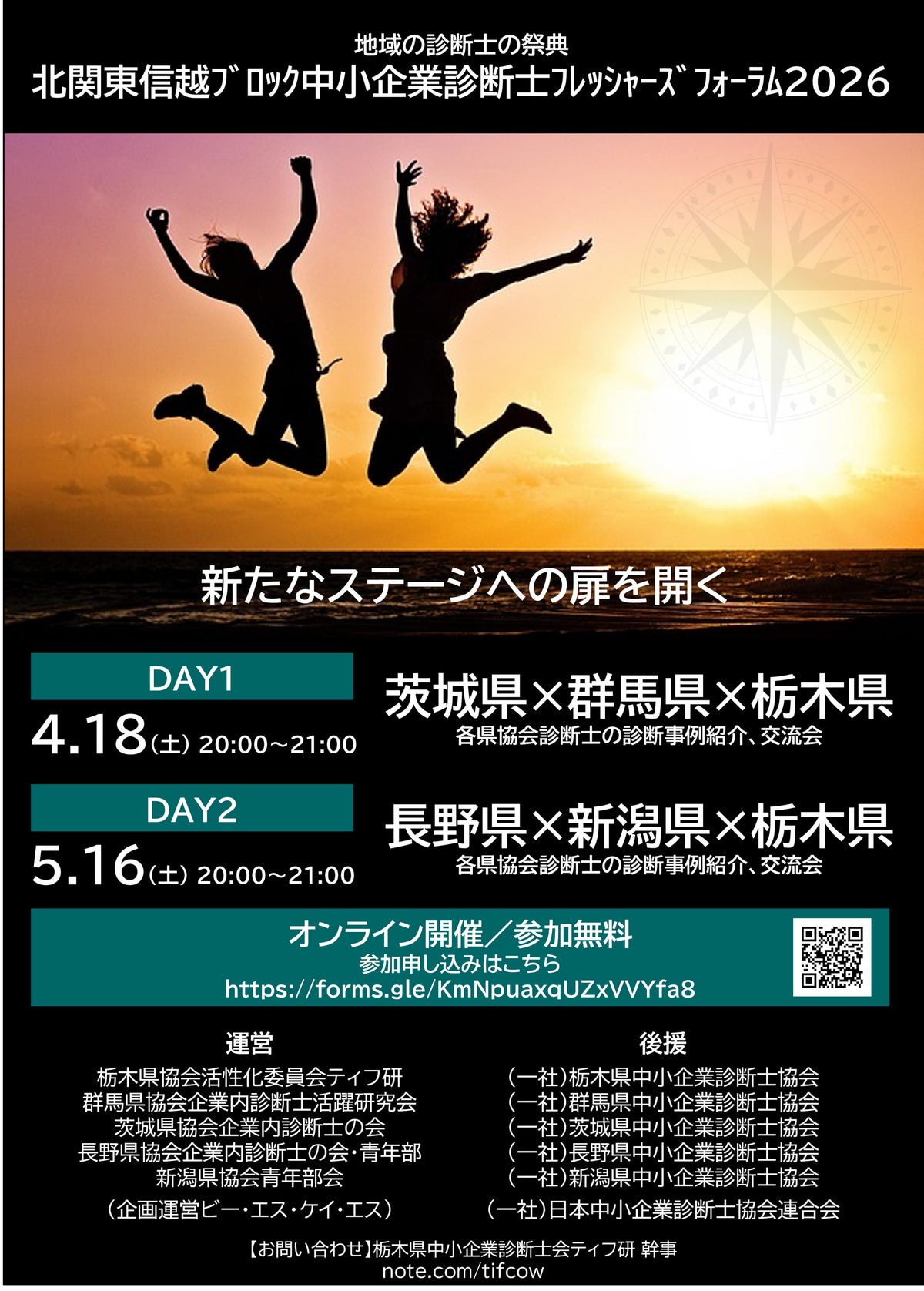 北関東信越ブロック中小企業診断士フレッシャーズフォーラム2026(4/18,5/16開催)