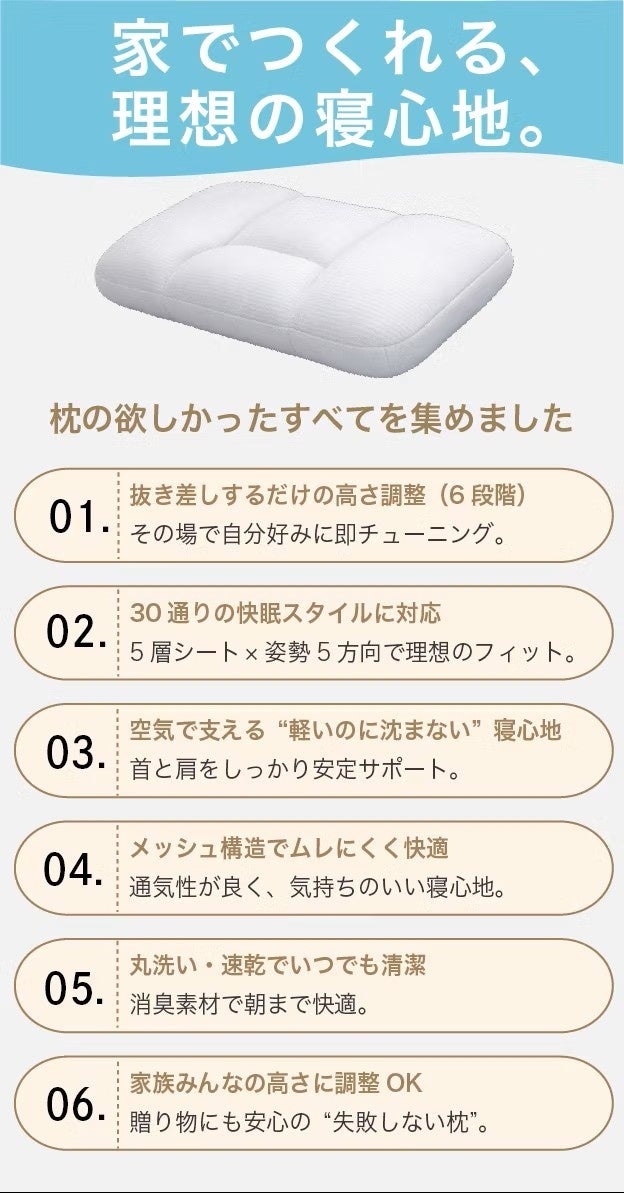 抜差しひとつでオーダーメイド級の枕をご自宅で実現。