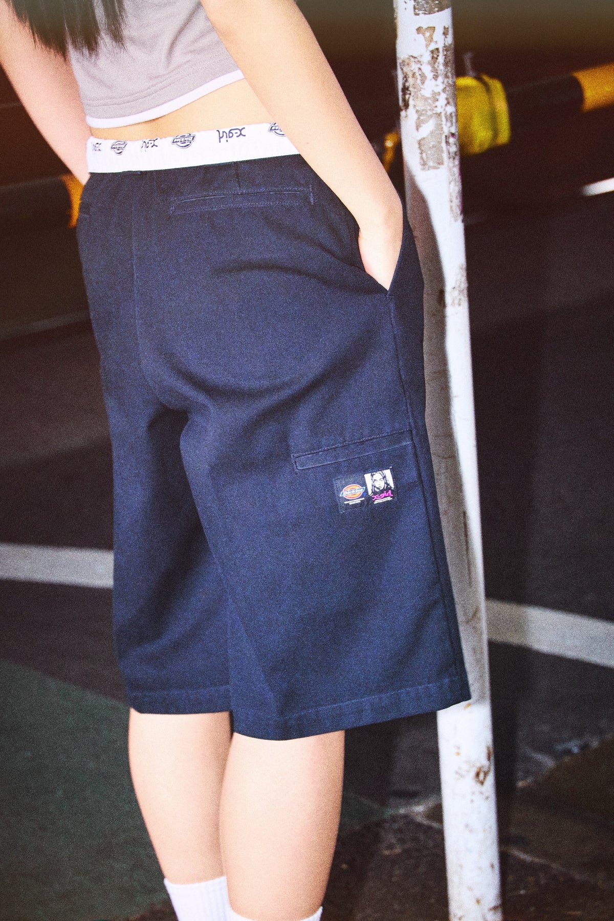 ウエストベルト内側には、Dickies(R)ロゴとX-girlロゴが交互にプリントされています。