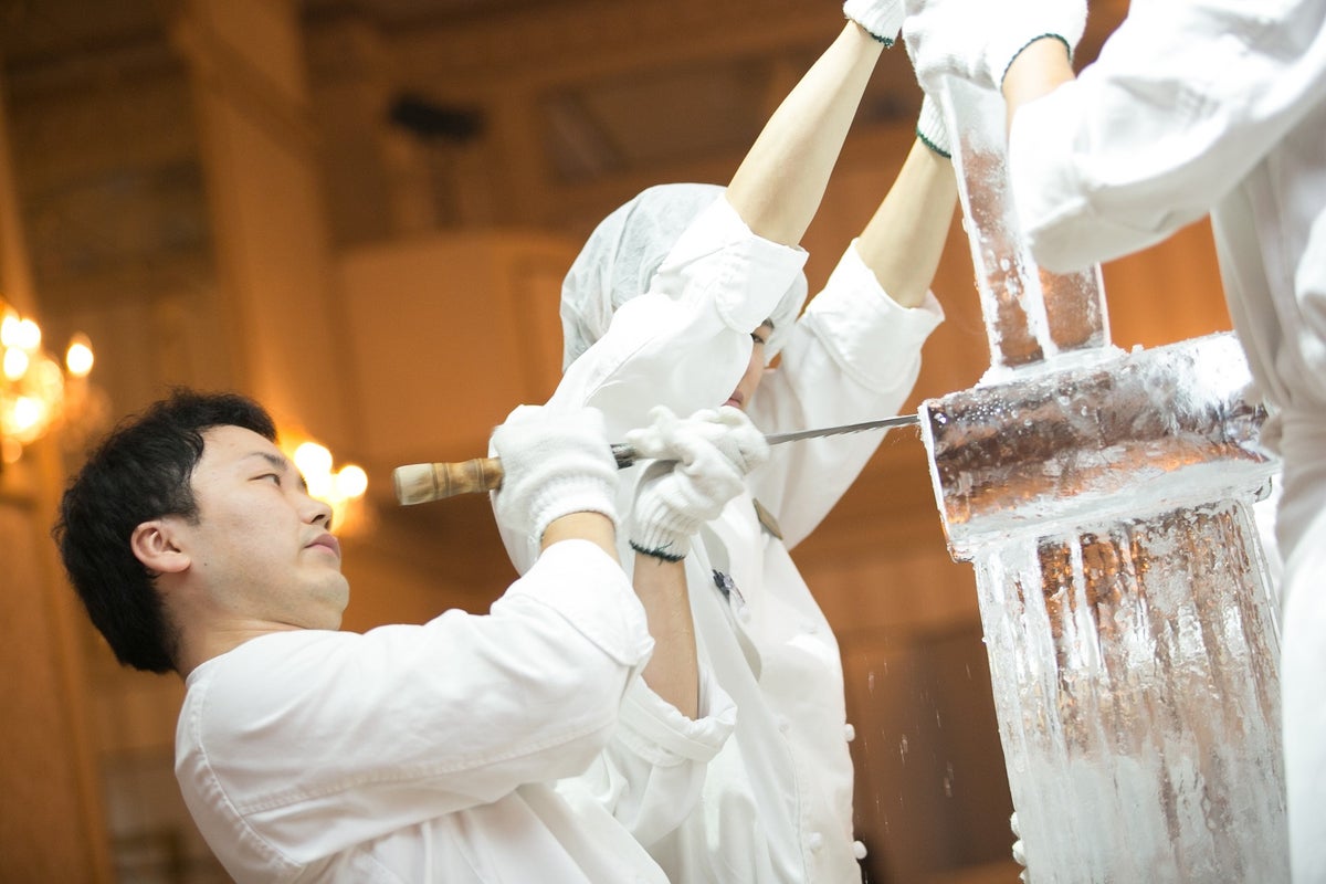 競技形式は、1m×53cm×26cm(約135kg)の氷柱を個人戦では8本使用。日頃の業務で培った高度な技術力と、ストーリー性のある表現を一つの作品として昇華させました。