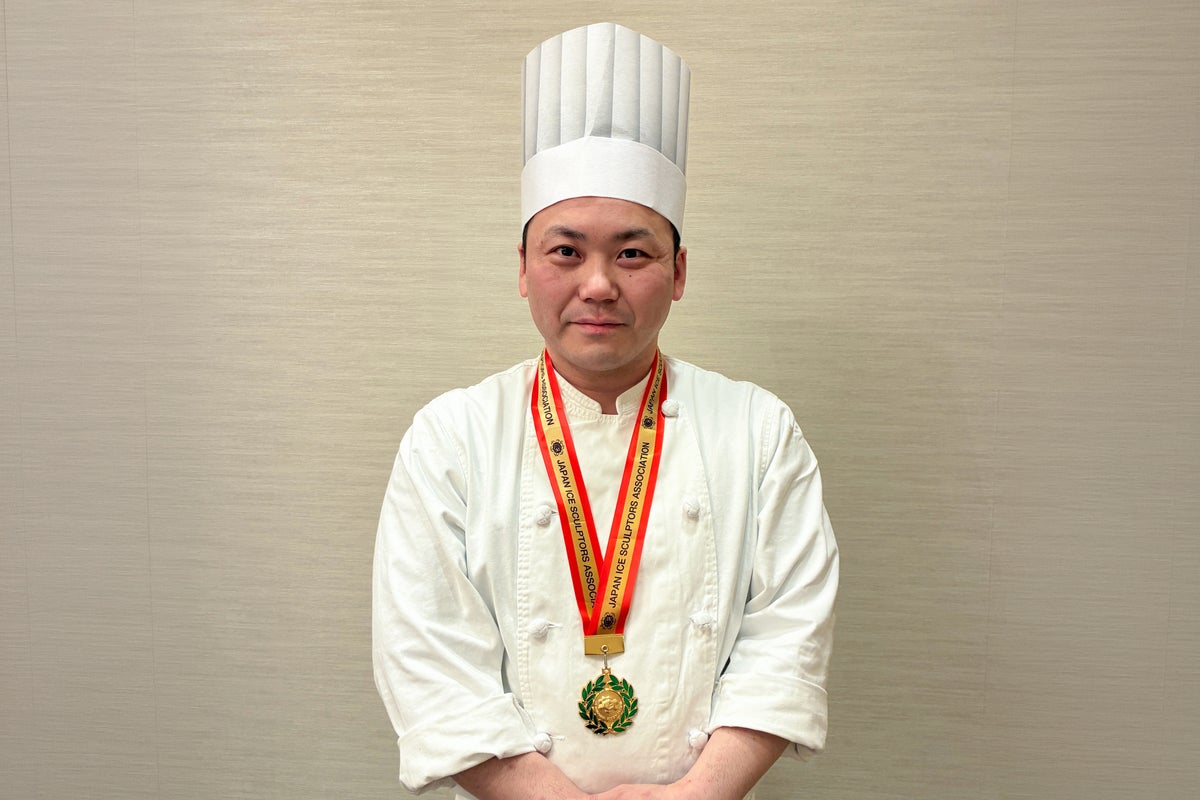 杉本は名古屋東急ホテルの調理部門メインキッチンに所属し、宴会料理などを担当する料理人です。ホテルの宴席やイベントを華やかに彩る装飾技術の一つとして氷彫刻にも取り組み、日頃から技術の研鑽を重ねています。