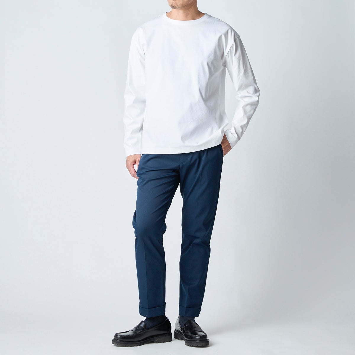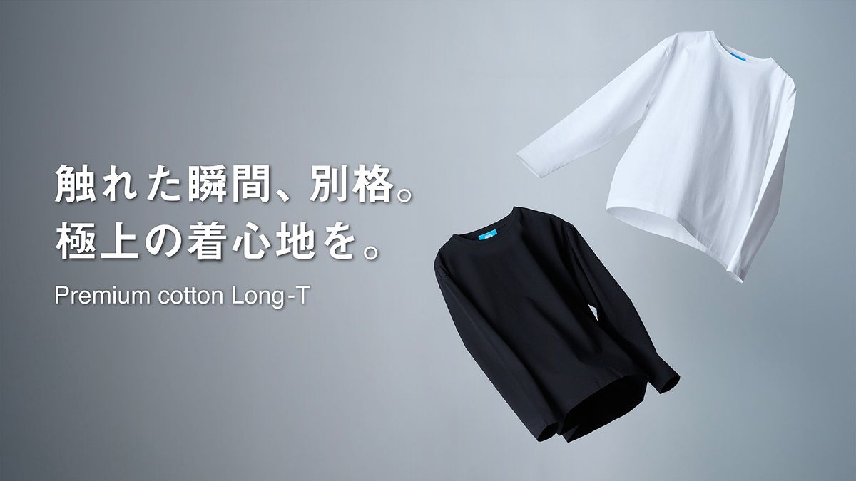この度、2026年3月13日(金)13:00より独自開発生地「ultimex cotton」を使用し、接触冷感・速乾性・汗拡散などの機能性を搭載した「プレミアムコットンロンT」を販売開始いたします。累計1万枚突破のベストセラーアイテム「プレミアムコットンTシャツ」の長袖バージョンにあたり、ハリ感のある滑らかな生地でジャケットのインナーとしてもカジュアルのトップスとしても活躍します。
