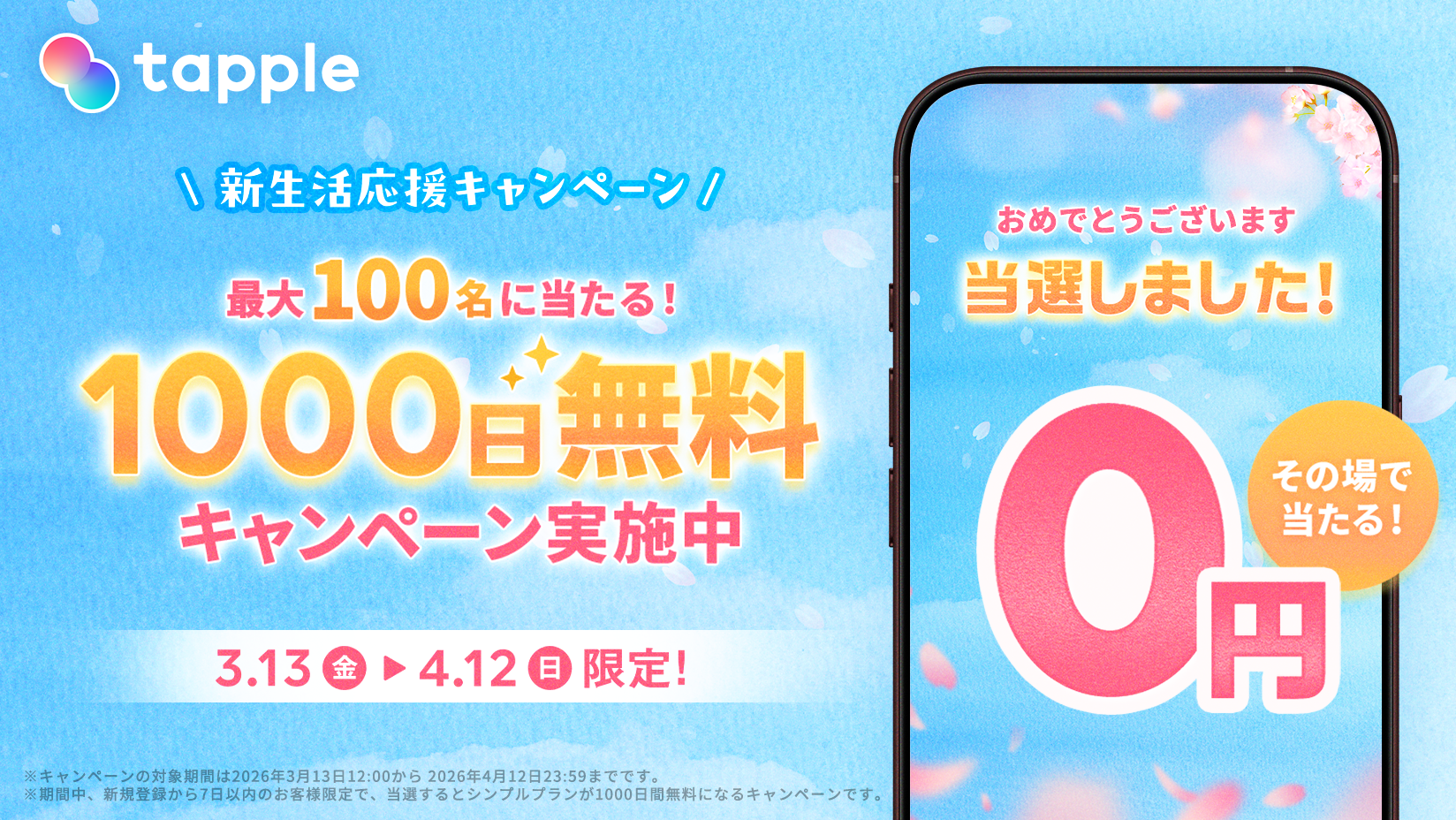 株式会社タップル(本社:東京都渋谷区、代表取締役社長:平松繁和)は運営するマッチングアプリ「タップル」において、2026年3月13日(金)より「新生活応援キャンペーン」を実施することをお知らせいたします。