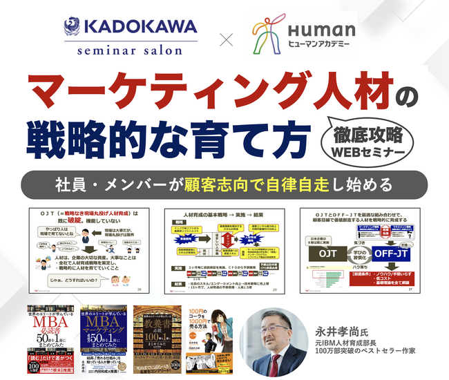 【KADOKAWA×ヒューマンアカデミー共催オンラインセミナー】「永井経営塾」のベストセラー著者・永井孝尚氏がノウハウを徹底解説する“実践的マーケティング人材育成”実施