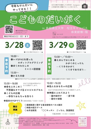こどものだいがくを3月28日(土)、29日(日)に開催します