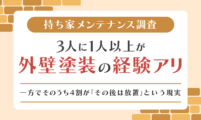 【持ち家メンテナンス調査】3人に1人以上が「外壁塗装の経験アリ」一方でそのうち4割が「その後は放置」という現実