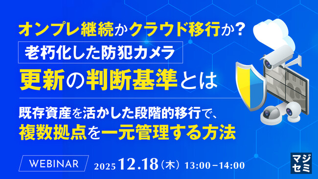 『オンプレ継続かクラウド移行か?老朽化した防犯カメラ、更新の判断基準とは』というテーマのウェビナーを開催