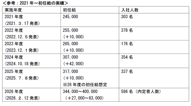 26年度新卒社員の初任給を最高40万円へ引き上げ