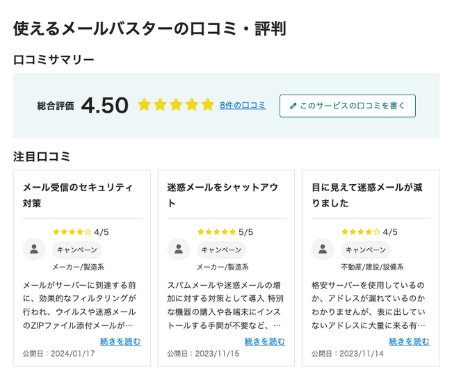 「使えるメールバスター」、「2025年下半期 BOXIL資料請求数ランキング」メールセキュリティ対策サービス 総合部門1位に選出