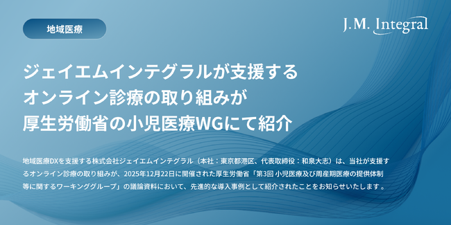 ジェイエムインテグラルが支援するオンライン診療の取り組みが厚生労働省の小児医療WGにて紹介