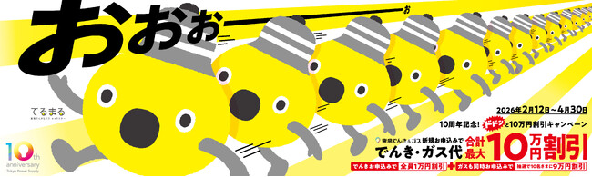 東急でんき&ガスへのお申込みで、でんき・ガス代を合計最大10万円分割引!『10周年記念!ドドンと10万円割引キャンペーン』を2026年2月12日(木)より開始