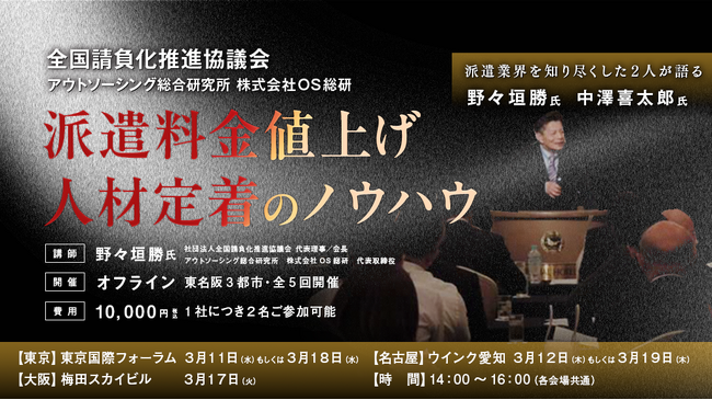 派遣料金の値上げと人材定着を両立する実践ノウハウを解説人材派遣会社向けオフラインセミナーを東名阪3都市で開催