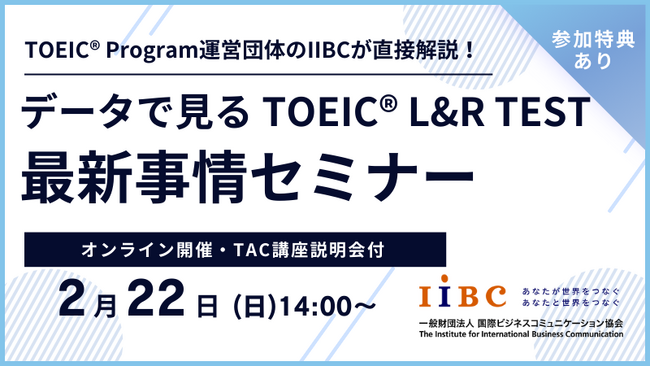 IIBC×TAC株式会社共催、2/22(日)オンラインセミナー開催!TOEIC(R) L&R TESTの最新情報や活用事例、スコアアップ戦略を解説!
