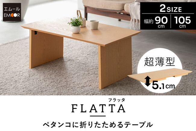たためばなんと約5cm!使わない時はペタンコに折りたためるリビングテーブル『FLATTA(フラッタ)』が新登場。日本の優れた折りたたみ文化を現代の暮らしに合わせてリバイバルしました。