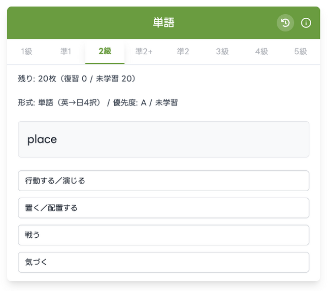 スタスタApps、英検(R)2級「単語・熟語学習」に新形式を追加(英→日〈4択〉/日→熟語〈入力〉)