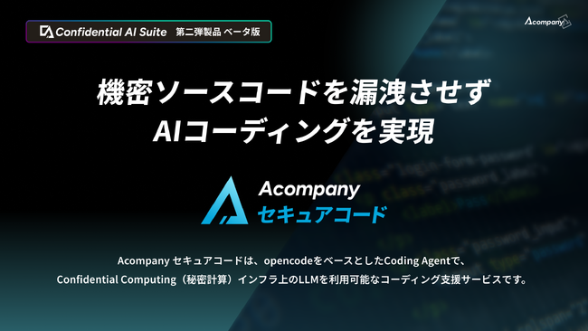 株式会社Acompany、機密ソースコードを漏洩させずAIコーディングを実現する「Acompany セキュアコード」ベータ版を提供開始