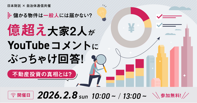【参加者募集!】日本財託×自治体通信共催「【年収500万円以上の公務員にオススメ!】儲かる投資物件は一般人には届かない?億超え大家2人がYouTubeコメントにぶっちゃけ回答!不動産投資の真相とは?」