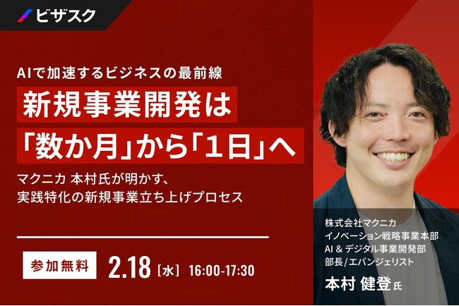 【 2/18 (水) 16:00 】AI で加速するビジネスの最前線 新規事業開発は「数ヶ月」から「1日」へ 無料オンラインセミナーを開催