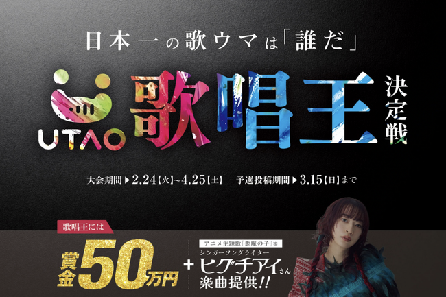 ジャンカラ運営カラオケアプリ「UTAO」で日本一の歌うまを決める超大型コンテスト開催!『第2回UTAO歌唱王決定戦』― 優勝賞品はヒグチアイ氏作曲のオリジナルソング+賞金50万円!