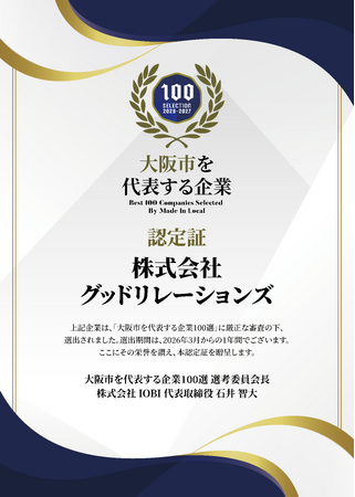 株式会社グッドリレーションズ、「大阪市を代表する企業100選」に選出