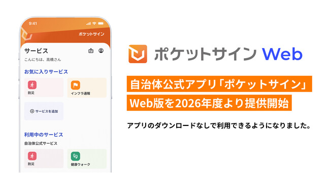 自治体公式アプリ「ポケットサイン」、Web版を2026年度より提供開始