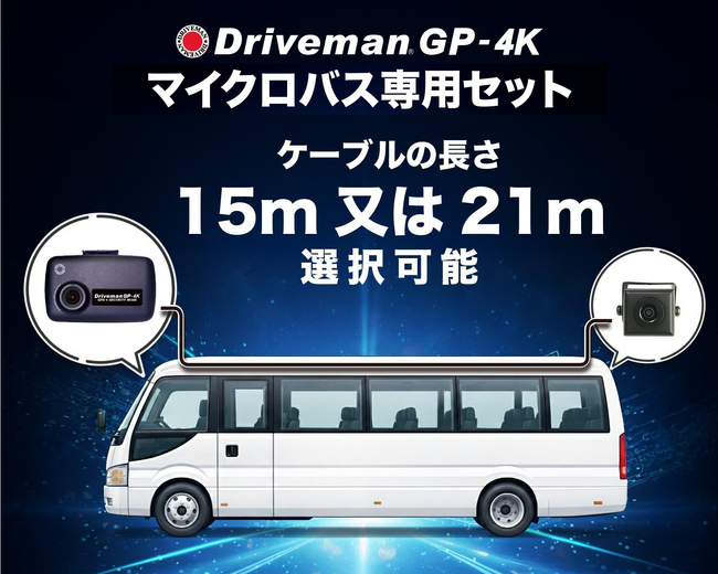 市販品の3倍、15mの専用ケーブルでマイクロバス最後尾まで完全カバー。物流のプロが認めた高耐久ドラレコに、死角ゼロを実現する「マイクロバス専用セット」が登場