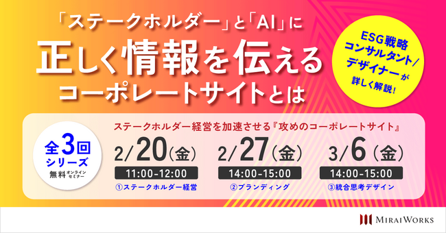 【オンライン開催】ステークホルダー経営を加速させる『攻めのコーポレートサイト』とは財務・非財務情報の「見せ方」と「ナラティブ」が企業の評価を変える|無料セミナー