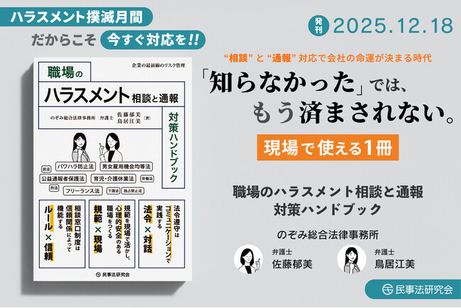 【ハラスメント対策なくして企業の存続なし?!】待望!ハラスメント対応に悩む管理職らのための実践書を発刊!