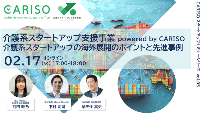 「CARISOスタートアップセミナーシリーズ vol.05:介護系スタートアップの海外展開のポイントと先進事例」を開催します