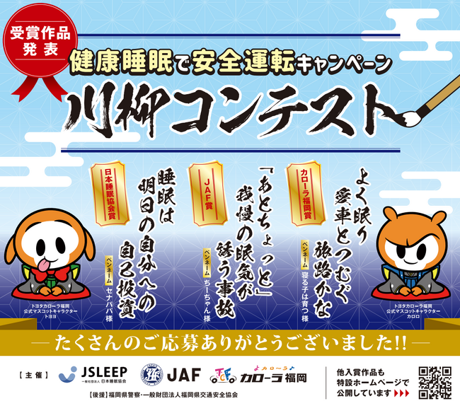 【JAF福岡】応募総数2,063句!「健康睡眠で安全運転キャンペーン川柳コンテスト」受賞作品発表!
