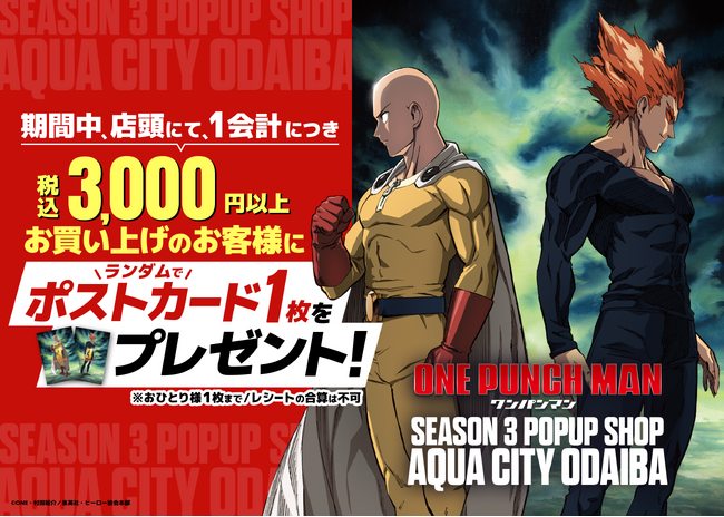 灯白社、アニメ『ワンパンマン』第3期 POPUP SHOP in アクアシティお台場開催決定
