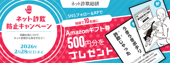 抽選で10名様にAmazonギフト券500円分をプレゼント「ネット詐欺総研」公式 Xにてネット詐欺防止キャンペーンを実施