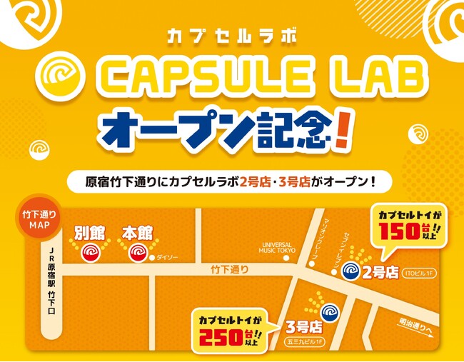11月1日(土)、原宿・竹下通りに「CAPSULE LAB(カプセルラボ)」2号店・3号店がNEW OPEN! 全店舗あわせて2,900台以上のカプセルトイがお出迎え♪