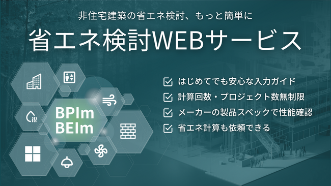 無料で使える非住宅向け『省エネ検討WEBサービス』が大幅アップデート。「外皮検討」から「一次エネルギー消費量(BEIm)まで」Web上で完結。設備入力(様式C~G)に対応