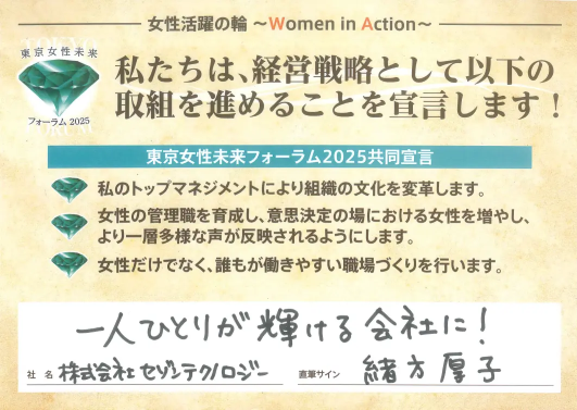 セゾンテクノロジー、東京都が主催する「東京女性未来フォーラム」の共同宣言に賛同しました