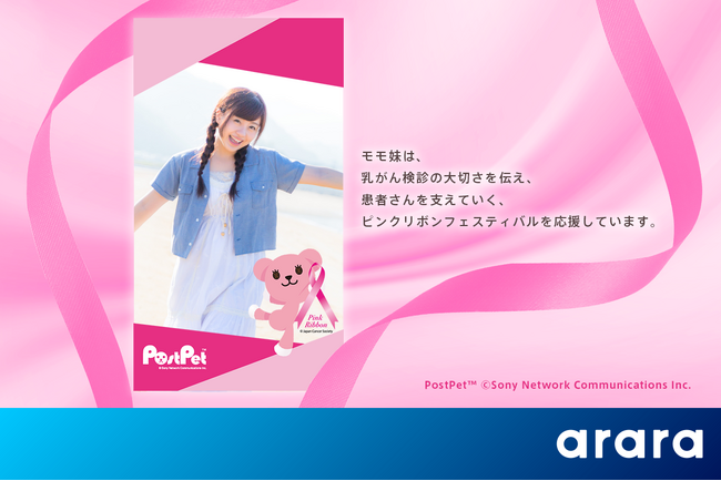 アララ、乳がんの早期発見・早期治療を呼びかける「ピンクリボン」運動をARで支援 「ピンクリボン」公式キャラクター「PostPet」のモモを起用したARフォトフレームを制作