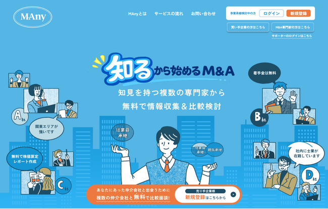 「”知る”から始めるM&A」――事業承継を「知る・比べる・選ぶ」までオンライン完結 事業承継・M&A情報プラットフォーム『MAny(メニー)』を全面リニューアル