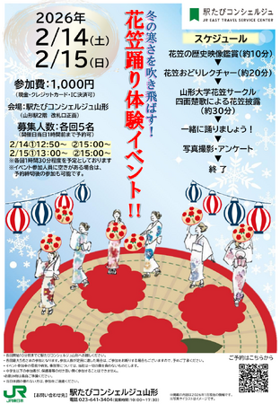 【2月14日・15日開催!】冬の寒さを吹き飛ばす!花笠踊り体験イベント(駅たびコンシェルジュ山形)