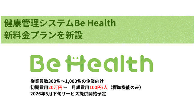 エヌ・エイ・シー・ケア、健康管理システム「Be Health」に新料金プランを新設