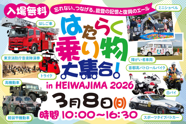 ~忘れない、つなげる。能登の記憶と復興へのエール~「はたらく乗り物大集合!in HEIWAJIMA 2026」を2026年3月8日(日)に開催いたします。