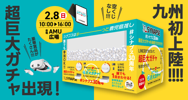 南九州で初めてのインターネットサービスプロバイダ「シナプス30周年感謝イベント」に高さ3.0m横幅4.5mの巨大ガチャ「モンスターカプセル」が登場