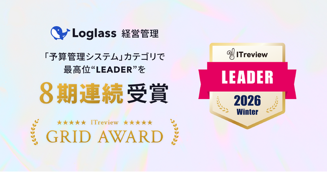 クラウド経営管理システム「Loglass 経営管理」が、ITreview Grid Award 2026 Winterの「予算管理システム」カテゴリで、最高位の「Leader」を8期連続受賞