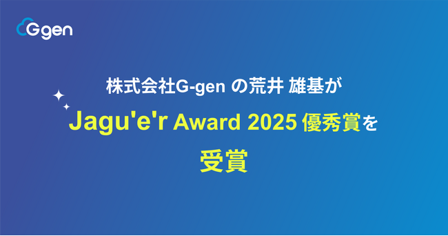 株式会社G-gen の荒井雄基が Jagu’e’r Award 2025優秀賞を受賞しました
