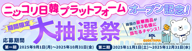 【SBJ銀行】グルメ、旅行、家電等、韓国の豪華賞品が最大113名様に当たるチャンス!「ニッコリ日韓プラットフォーム」オープン記念大抽選会〈第二期〉開始のお知らせ