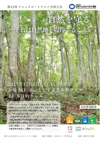 【東京・西池袋】自然環境の保全活動を進める公益団体、日本ナショナル・トラスト協会が、「ナショナル・トラスト全国大会」を12月6日に開催。申込を受付中